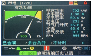 (3)機(jī)組可實(shí)現(xiàn)遠(yuǎn)程啟停,有功功率及無(wú)功功率的自動(dòng)調(diào)整,自動(dòng)同期,滿足自動(dòng)化機(jī)組的需要。保護(hù)功能齊全,有發(fā)動(dòng)機(jī)超速、油壓低、水溫高、機(jī)油溫度高等發(fā)動(dòng)機(jī)保護(hù),也有逆功、過(guò)流、欠壓/過(guò)壓、欠頻/過(guò)頻等發(fā)電機(jī)保護(hù)功能。顯示器:顯示參數(shù)齊全,滿足顯示、參數(shù)設(shè)置、報(bào)警、歷史記錄等需要。