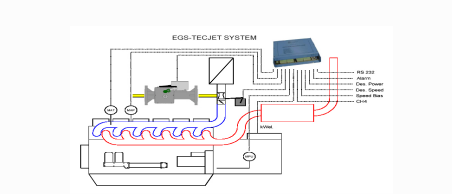 EGS是全電腦智能化,高精確度的燃?xì)膺M(jìn)氣控制系統(tǒng),可通過(guò)計(jì)算機(jī)接口實(shí)現(xiàn)機(jī)組參數(shù)實(shí)時(shí)監(jiān)控。它的信息輸入系統(tǒng)包括速度傳感器、λ傳感器(機(jī)組標(biāo)定用)、功率傳感器或扭矩信號(hào)傳感器、甲烷傳感器、兩個(gè)進(jìn)氣壓力傳感器和一個(gè)進(jìn)氣溫度傳感器,這些傳感器將發(fā)動(dòng)機(jī)運(yùn)行過(guò)程中的填埋氣體濃度變化、轉(zhuǎn)速、功率(或扭矩)、尾氣中氧含量(標(biāo)定用)等信號(hào)及時(shí)傳遞給EGS控制器。EGS控制器將上述信息進(jìn)行綜合處理,計(jì)算出發(fā)動(dòng)機(jī)更佳運(yùn)行所需要的燃?xì)饬?,將信息傳遞給Tecjet控制閥,由Tecjet控制閥控制調(diào)整燃?xì)膺M(jìn)氣量,實(shí)現(xiàn)控制更佳空燃比的目的。通過(guò)控制WOODWARD-ProAct執(zhí)行器來(lái)控制混合氣的流量,將發(fā)動(dòng)機(jī)的轉(zhuǎn)速控制在標(biāo)定范圍內(nèi)。